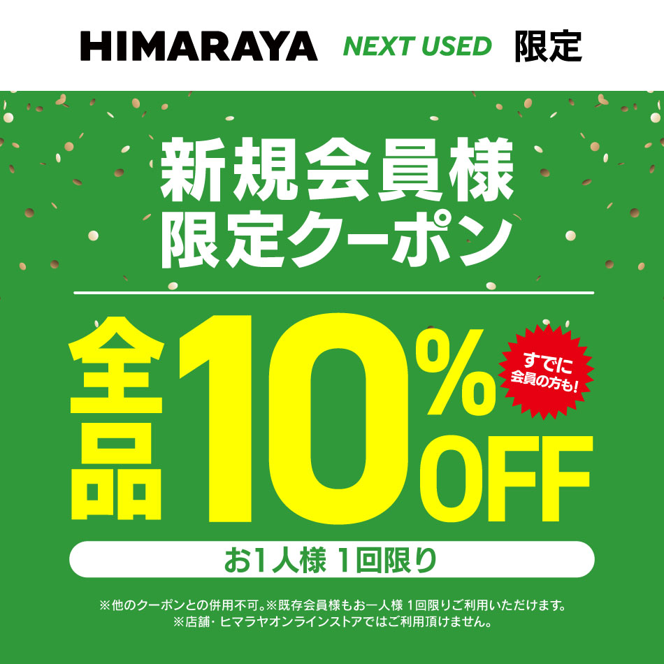 HIMARAYA NEXT USED限定!新規会員になると、全品10%OFFになるクーポンが配布中です。