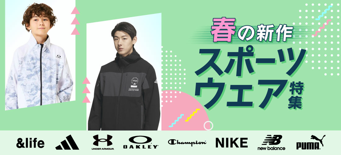 NIKE(ナイキ)、adidas(アディダス)、Under Armour(アンダーアーマー)など、人気ブランドの新作スポーツウェアが特集されています。一部セール品もあるのでチェックしてみてください。