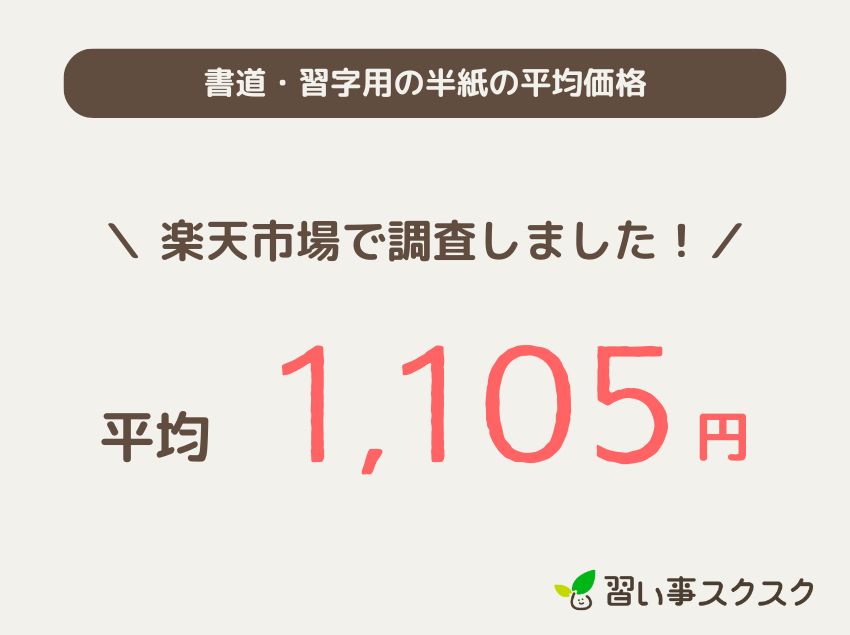 習い事スクスク編集部にて、「書道・習字用の半紙」の楽天市場レビュー順トップ10の平均価格を調べたところ、1,105円という結果になりました。
