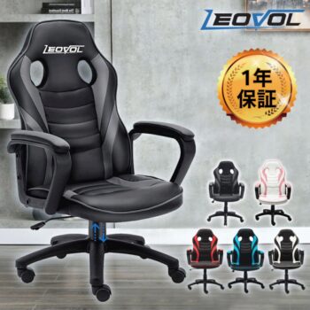 長時間の勉強も快適にサポートしてくれるLEOVOLのゲーミングチェア。座面の昇降機能により、お子さんの身長やデスクに合わせて高さ調整可能です。
