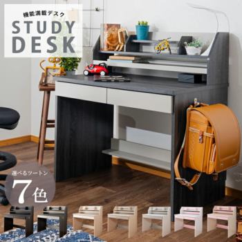 姫系からシックなカラーまで7色から選択可能で、お子さんのお気に入りがきっと見つかりますよ。デスク棚には便利なタブレット置き付きで、タブレット学習にも最適。収納力がほしい場合は、デスクワゴン付きセットもおすすめです!