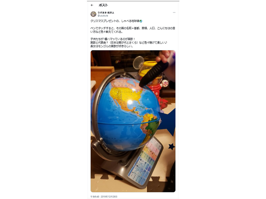 プレゼントとしてしゃべる地球儀はインパクト大です。