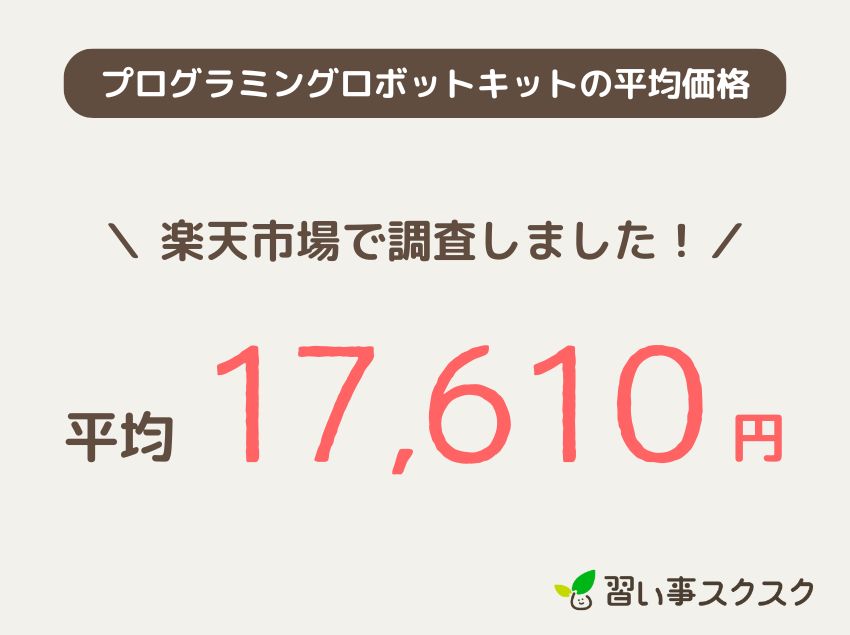 習い事スクスク編集部にて、小学生におすすめの『プログラミングロボットキット』の楽天市場レビュー順トップ10の平均価格を調べたところ、17,610円という結果になりました。