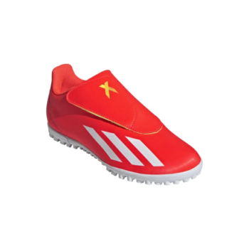 これからサッカーを始めるジュニアプレーヤーにおすすめのファーストサッカートレーニングシューズ。アッパーは、成長する足に合わせてつま先部分の幅が広くなっており、ベルトでフィット感を調節できます。さらに、成型E.V.A.のミッドソールが優れたクッション性を発揮し、足の負担を軽減してくれますよ。
