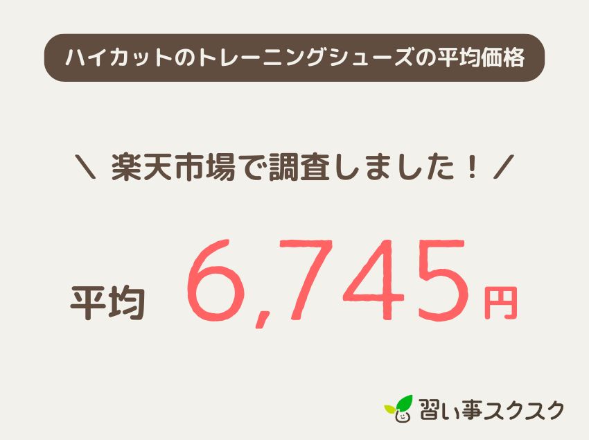 習い事スクスク編集部にて「ハイカットサッカートレーニングシューズ」の楽天市場レビュー順トップ10の平均価格を調べたところ、6,745円という結果になりました。