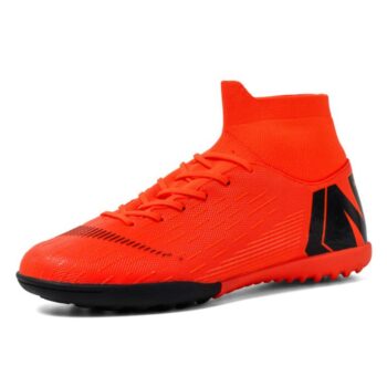 サッカー用の「ハイカットトレーニングシューズ(トレシュー)」は、足首まですっぽり包み込むデザインが特徴です。