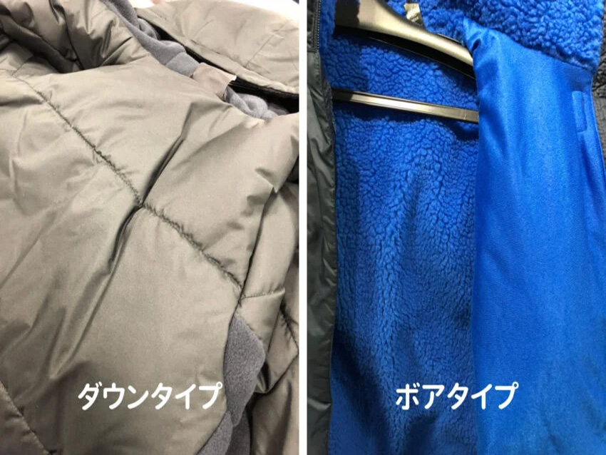 ベンチコートには、ダウンタイプとボアタイプの2種類があります。