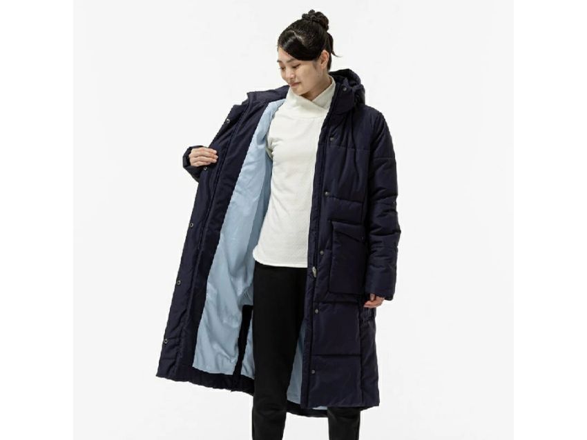 ルースイソンブラの大人用防寒ウェアー。素材の光沢感を抑えることで質感よく仕上げた、中綿コートです。手首内側にはリブが付いているため、冷気を防いで温かさを保てます。ママパパで兼用しやすい、ひざ下丈です。