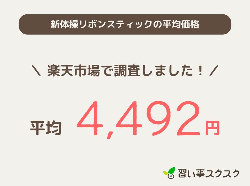 習い事スクスク編集部にて、新体操リボンスティックの楽天市場レビュー順トップ10の平均価格を調べたところ、4,492円という結果になりました。