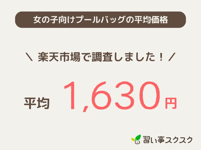 習い事スクスク編集部にて、女の子向きプールバッグの楽天市場レビュー順トップ10の平均価格を調べたところ、1,630円という結果になりました。