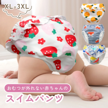 人気ランキング入りしている赤ちゃん用水遊びパンツ。かわいらしいデザインと、幅広いサイズ展開が魅力です。裏地は通気性がよく、赤ちゃんの肌にやさしい漏れ防止の防水抗菌布になっています。