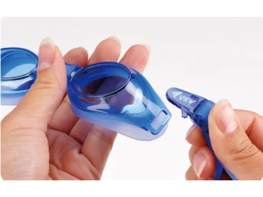 度つきゴーグルの組み立て方の一例として、VIEWのジュニア専用度付きゴーグルの組み立て方を紹介いたします。どのメーカーであっても取扱説明書通りに簡単に組み立てることができます。