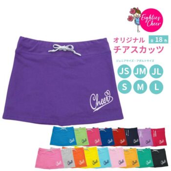 エイティズオリジナルのチア・ダンス用スカッツ。インナーパンツ付きで演技中の動きもスムーズ。元気に動いても安心です。すっきりシルエットのスカートが欲しいお子さんにおすすめです。