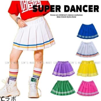 ふんわり広がるプリーツミニスカート。チアダンスやチアリーディングの衣装、レッスン着などにおすすめ。キッズ~大人までのサイズ展開があり、チームで揃えやすそうです。