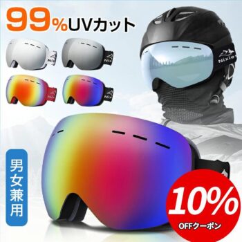 丸みのある球面レンズ使用で、汗による曇りを防止してくれます。UVカット、ダブルレンズ、ミラー加工、眼鏡・ヘルメット対応など、機能面も充実しています。リーズナブルなスノーゴーグルを探している人におすすめ!