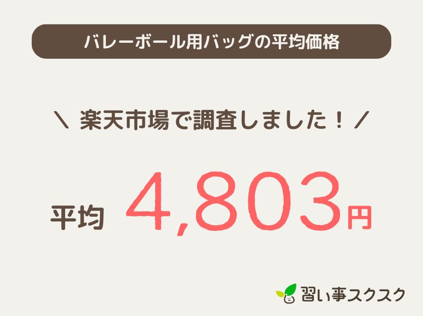 習い事スクスク編集部にて、バレーボール用バッグの楽天市場レビュー順トップ10の平均価格を調べたところ、4,803円という結果になりました。