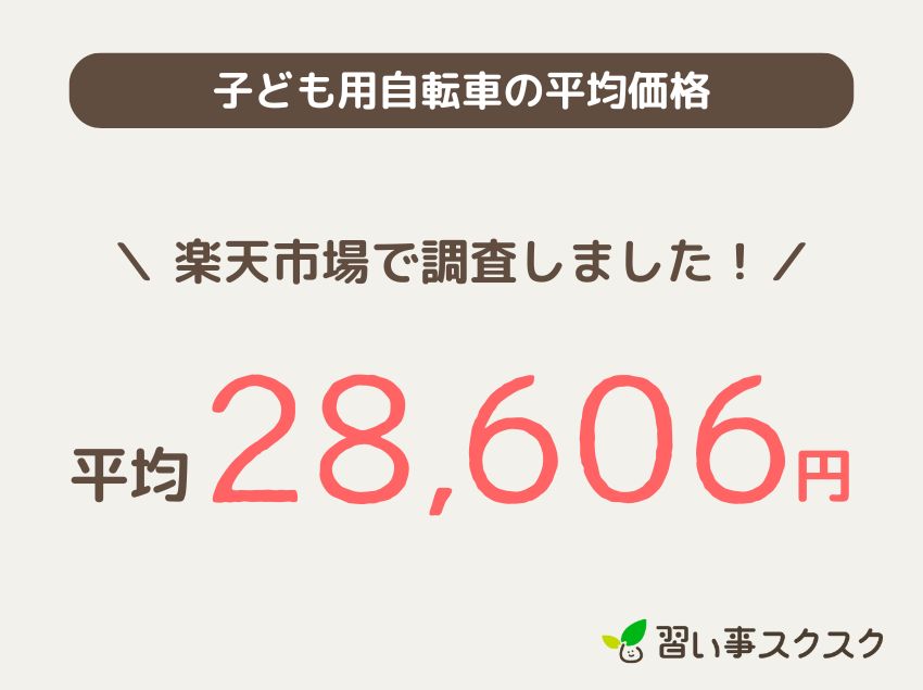 習い事スクスク編集部にて、子ども用自転車の楽天市場レビュー順トップ10の平均価格を調べたところ、28,606円という結果になりました。