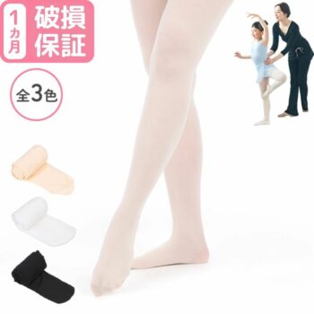 伸縮性抜群で動きやすく、肌触りやわらかでふんわり優しいはき心地のバレエタイツです。摩擦に強く、毛玉になりにくい素材です。脚を大きく開いたり、上げたりするのでタイツの股部分に大きな負荷がかかりますが、マチ付きタイツのため破れにくく安心です。