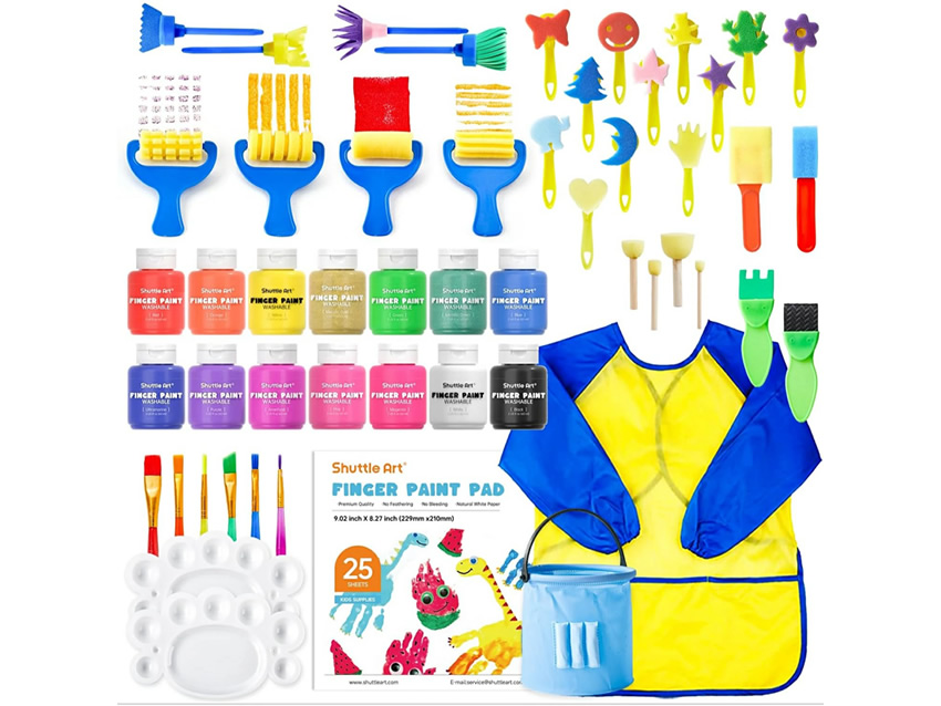 スタンプやスポンジを使ったりフィンガーペイントをしたりなど、おうち遊びや作品づくりにおすすめです。