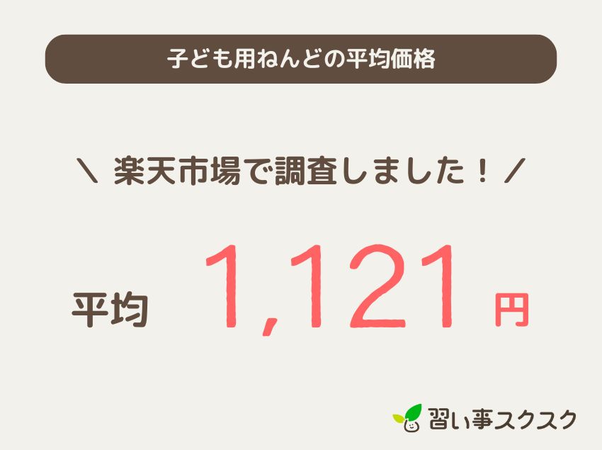 習い事スクスク編集部にて、ねんどの楽天市場レビュー順トップ10の平均価格を調べたところ、1,121円という結果になりました。