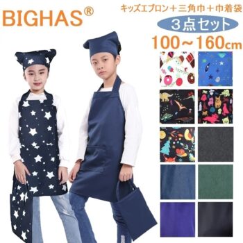 小学校での給食当番用に 簡単に着脱出来るエプロンと三角ふきんを探してました。この4月で小学3年生と新1年生になる男の子のために購入しました。中々三角ふきん等結んだり止めたりするのが難しいのですが、こちらの商品はゴム等で簡単に出来るので不器用な子供達でもできそうです。(一部抜粋)
