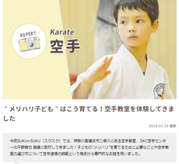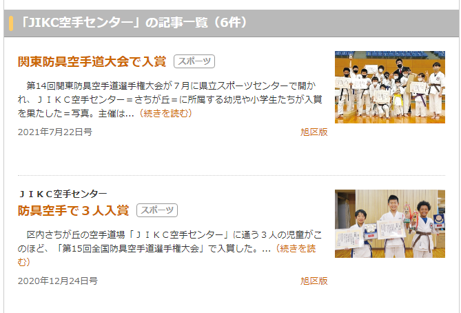 2021.08.25 教室からのお知らせ 【はじめての方へ】JIKC空手教室がわかる記事集 ↑↑↑JIKC空手センターの記事↑↑↑] ↑↑↑タウンニュースに掲載された記事一覧↑↑↑ https://www.instagram.com/p/CS_-QZXln0K/ 【厳選】空手に役立つ体力増進動画【ランキング】 道場のイベント一覧(スライド) https://www.youtube.com/watch?v=xM1sqMe_qgc&list=PLIJwoNzXFDzA16wQEXNIoz9-Zy8HsrTpS&index=43 体験・お問い合わせ
