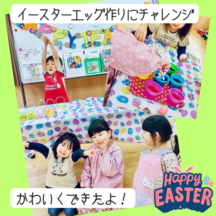 みんなでEasterの絵本を読んだり、卵に色付けをしてイースターエッグを作って、バスケットとエッグスタンドも作りました。楽しかったね!