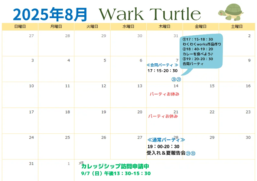 現時点での8月の予定(変更する場合があります)