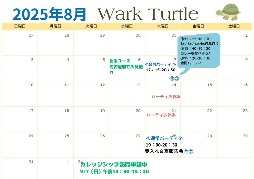 ☆合同パーティ8月7日(木)17:15-20:30 *水筒・タオル持参