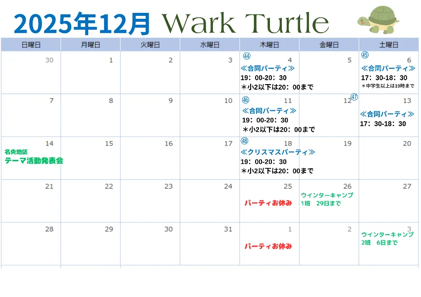 ☆クリスマスパーティ 12月18日(木)19:00-20:30
