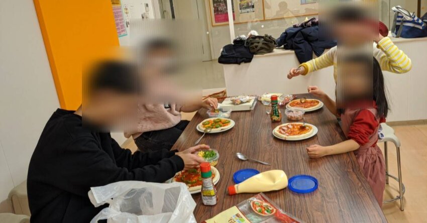 みんなで、ピザを作って焼いたり、コーンスープを作ったり。
