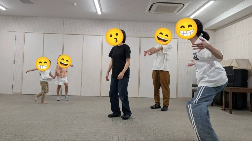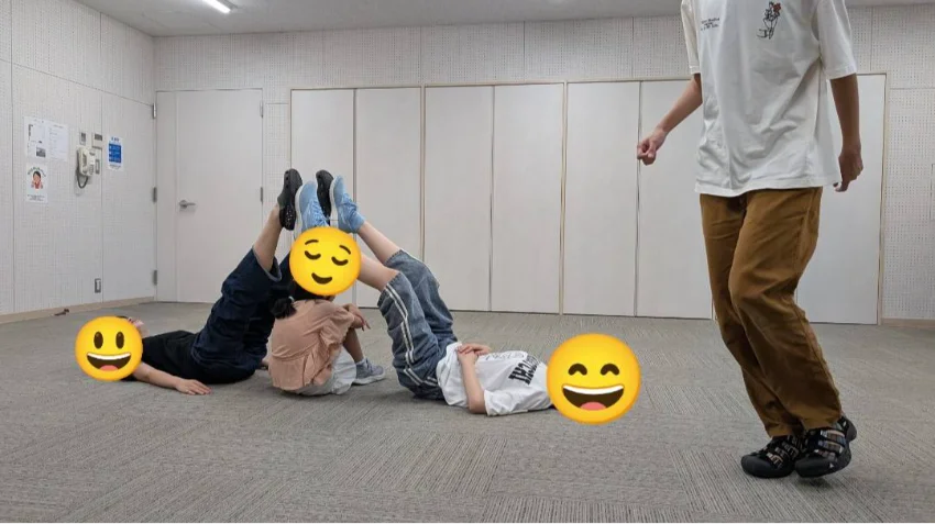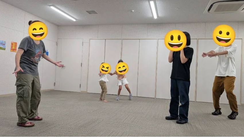 そのあと、子どもたちで考えて顔に貼り付けて走る遊びになっていました^^