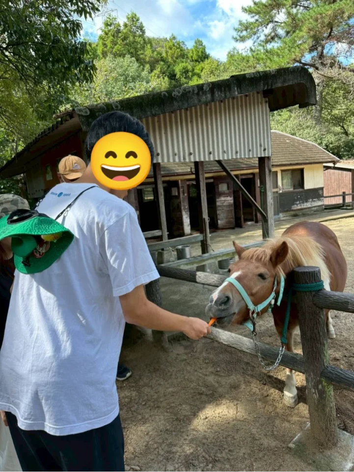 まずはポニーににんじんの餌やり。