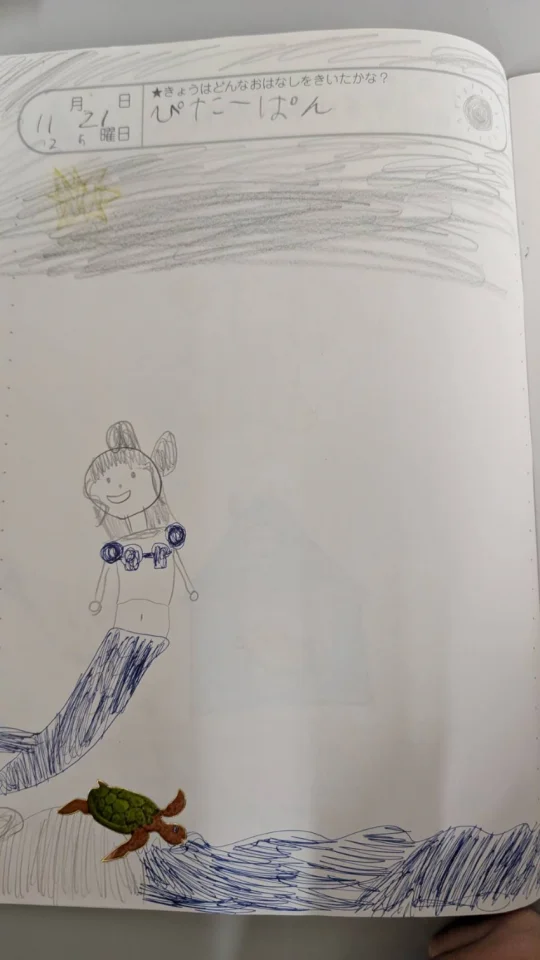 メアリーが好きなのかな。このおはなしの絵をよく描いて見せてくれます。