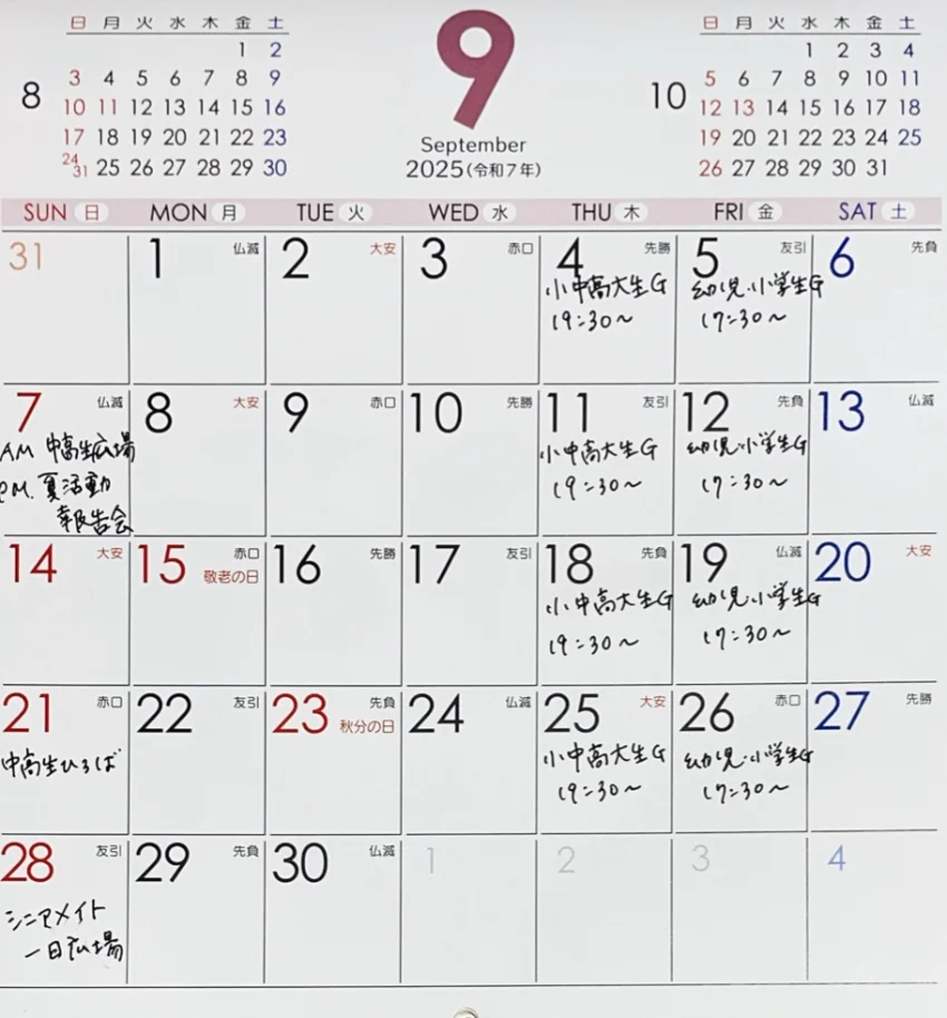 9月に2026年参加予定者と保護者の方との面談を行う予定です。よろしくお願いします。