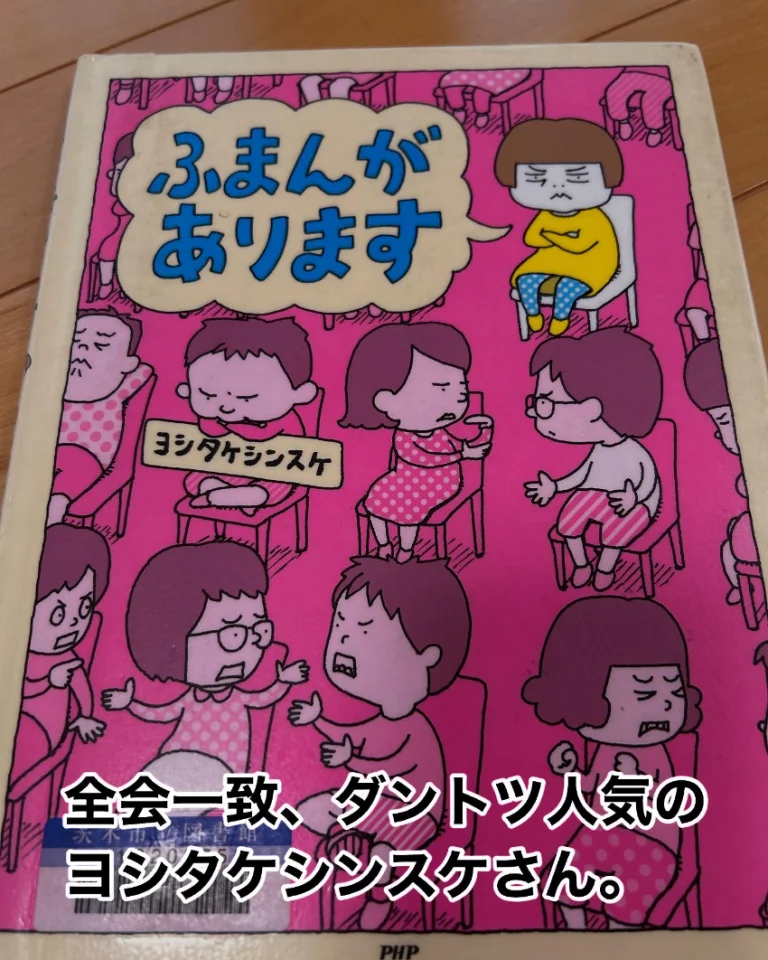 その後絵本『ふまんがあります』を読みました。3冊絵本を借りてきていたのですが、その中からそれぞれ読んで欲しいと思う本を選んでもらったところ全会一致でヨシタケシンスケさんの絵本に決まったというわけです。
