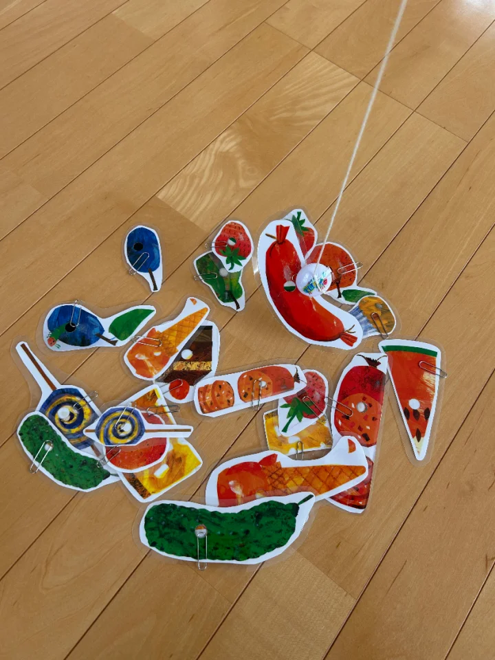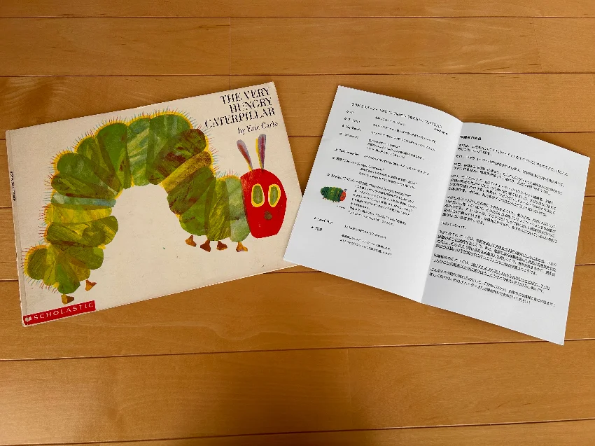 体験会では9人のお子さんと、集まれる保護者さんとにお越しいただき、ソングを数曲、絵本「はらぺこあおむし」の英語と日本語での読み聞かせ、おはなしごっこで遊びました。