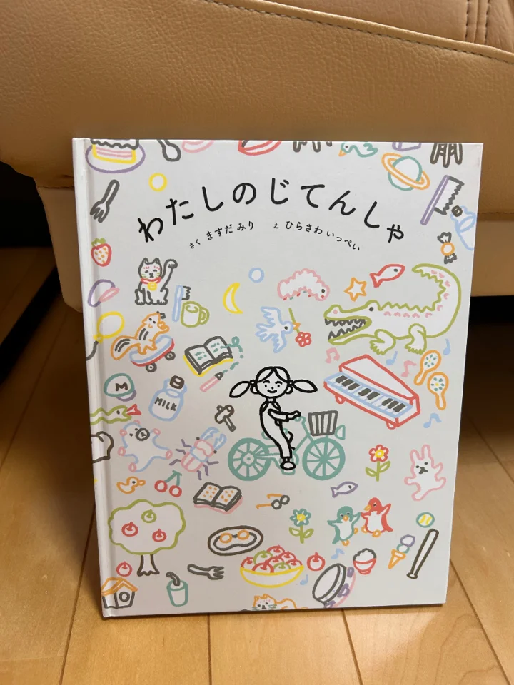 その後、絵本『わたしのじてんしゃ』を読みました。自分の理想のじてんしゃはどんどん大きくなっていきます…巻末にお友達のシールがあって、どこのページでも好きなところに貼ることができました。まだまだシールを貼り足りない子ども達でしたが、残りは体験会が終わってからということで、そのままおはなしごっこに移りました。